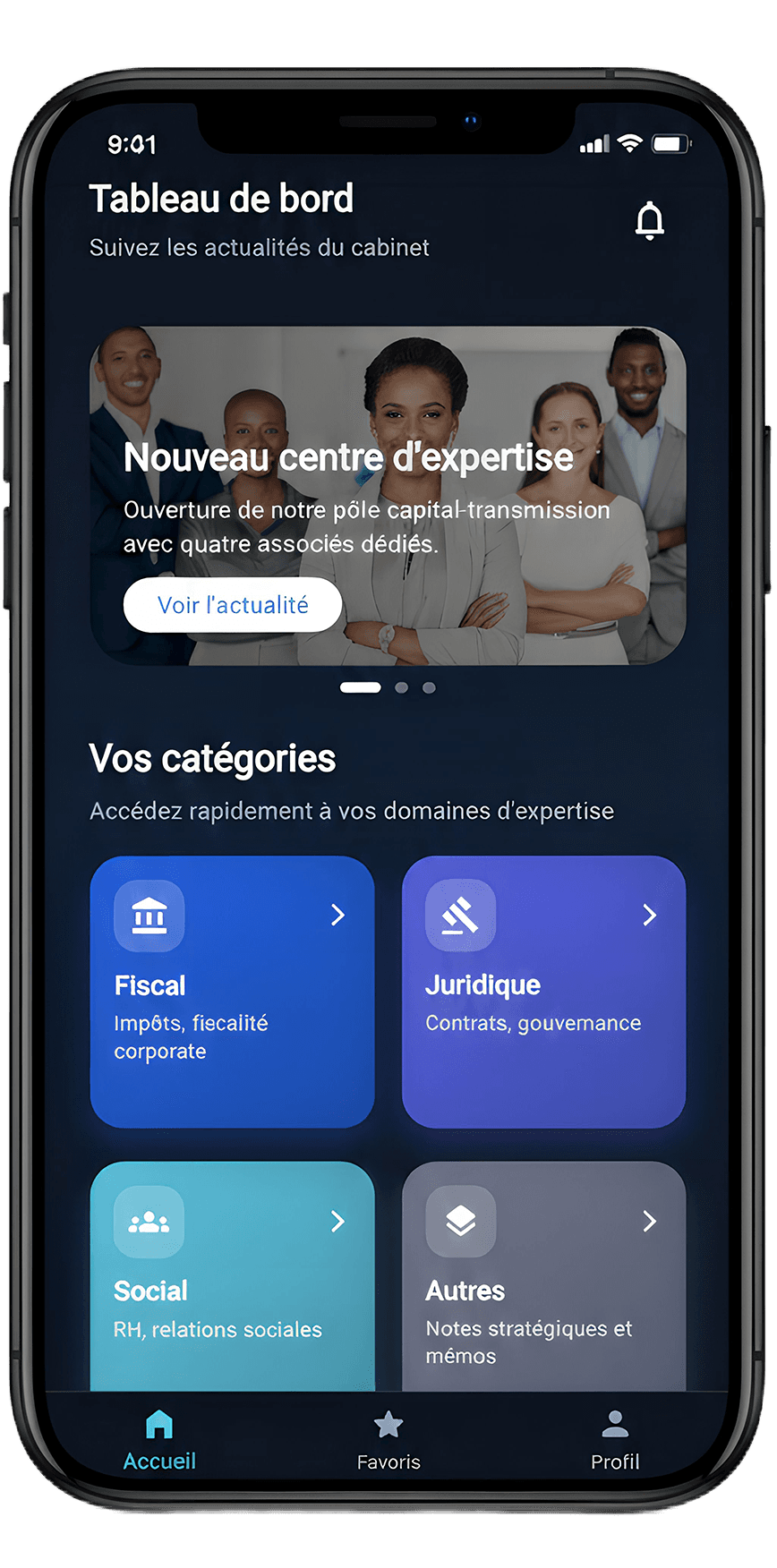 Bibliothèque fiscale, juridique, sociale et autres, pensée pour les clients du cabinet Le Mitouard. Consultation mobile & tablette, mode offline, recherche IA avancée et accès premium renouvelé chaque année (1re année offerte).